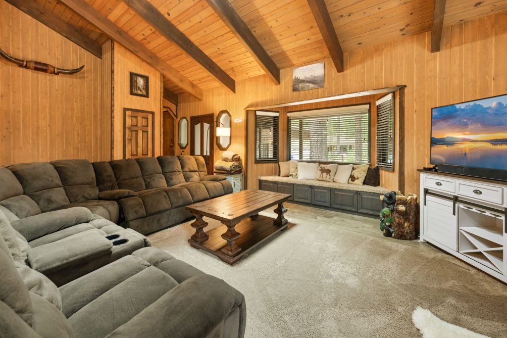 Welcome to Pine View Escape, a charming retreat nestled in the serene landscapes of Big Bear, CA. This inviting property offers a perfect blend of comfort and style, ideal for a memorable getaway. Step outside to discover a private hot tub and a delightful fire pit, perfect for relaxing evenings under the stars. The expansive deck and patio area, complete with a grill, provide an excellent setting for outdoor dining and entertaining amidst the beauty of nature. Inside, the home boasts a warm, inviting atmosphere with a cozy fireplace and hardwood flooring. A fully equipped kitchen, featuring modern appliances, makes meal preparation a breeze, while the dining area is perfect for enjoying those culinary creations. For entertainment, enjoy the ping-pong table or unwind with a movie on the smart TV. Conveniently located near the attractions of Big Bear, this property offers both tranquility and accessibility, ensuring a perfect retreat for families and friends seeking a refreshing escape.