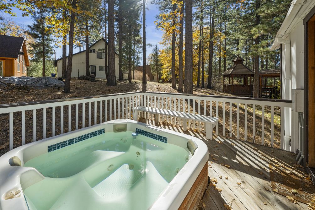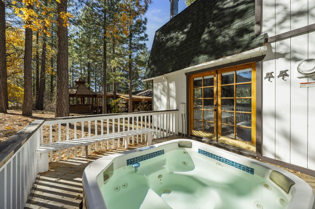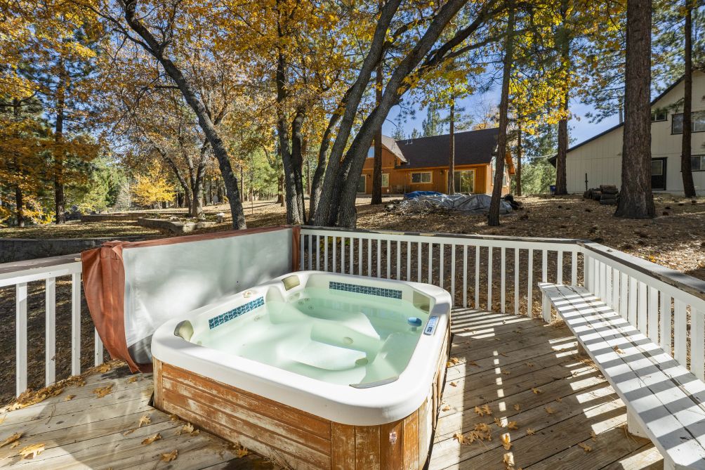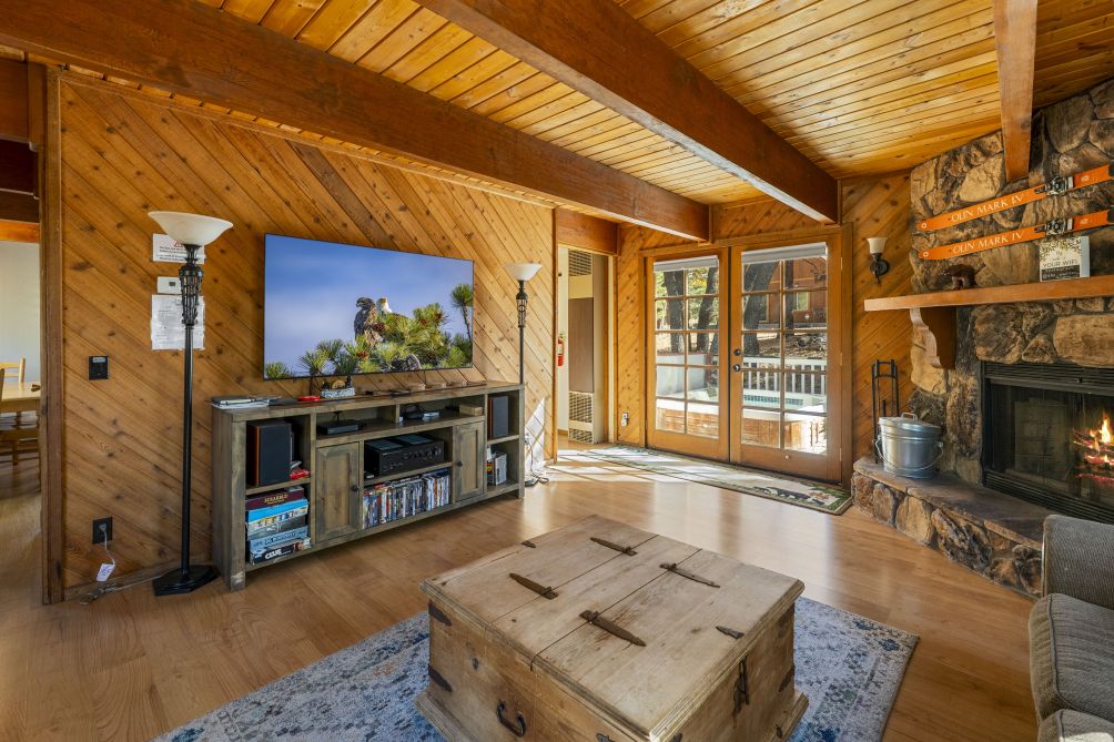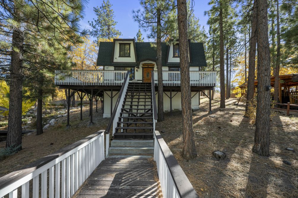 Nestled amidst the serene beauty of Big Bear Lake, The Mountain Treehouse offers a unique retreat that blends rustic charm with modern comforts. This secluded haven provides captivating mountain views, allowing you to immerse yourself in nature's tranquility. The property features two cozy bedrooms. The living room, with its inviting fireplace, is perfect for unwinding after a day of adventure. Step outside onto the expansive deck to enjoy the fresh mountain air, or soak in the private hot tub under a starlit sky. The kitchen is equipped with modern appliances, including a Keurig coffee machine and a wine glass set, ideal for culinary enthusiasts. With amenities like high-speed Wi-Fi and a smart TV, you'll have all the conveniences of home at your fingertips. Embrace the peaceful ambiance of The Mountain Treehouse, where unforgettable memories await.