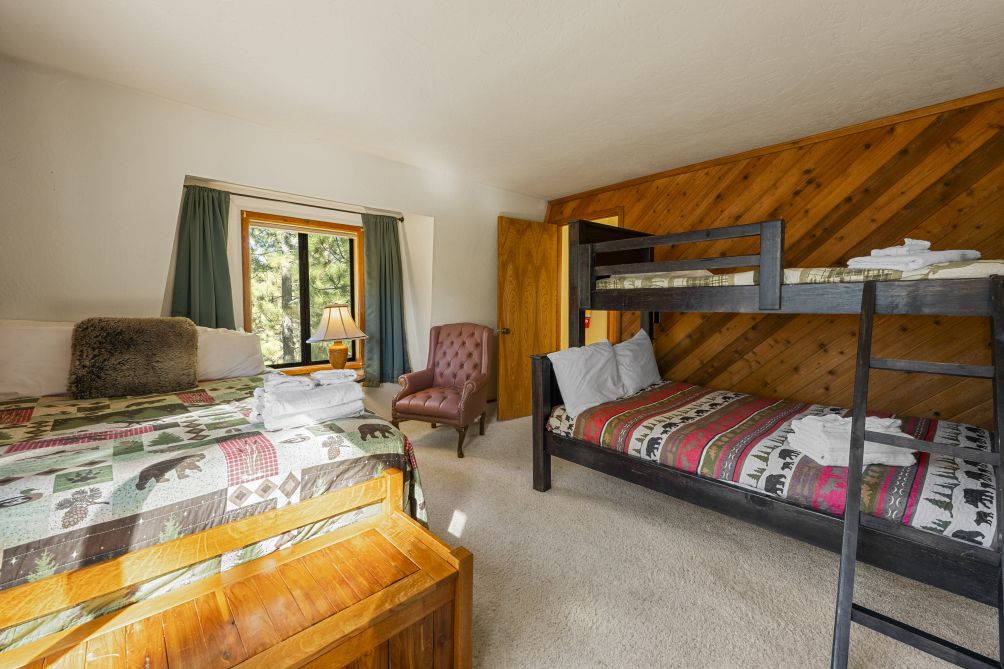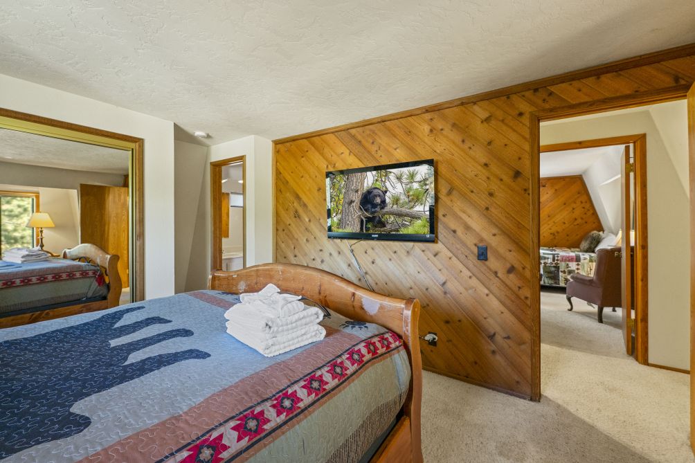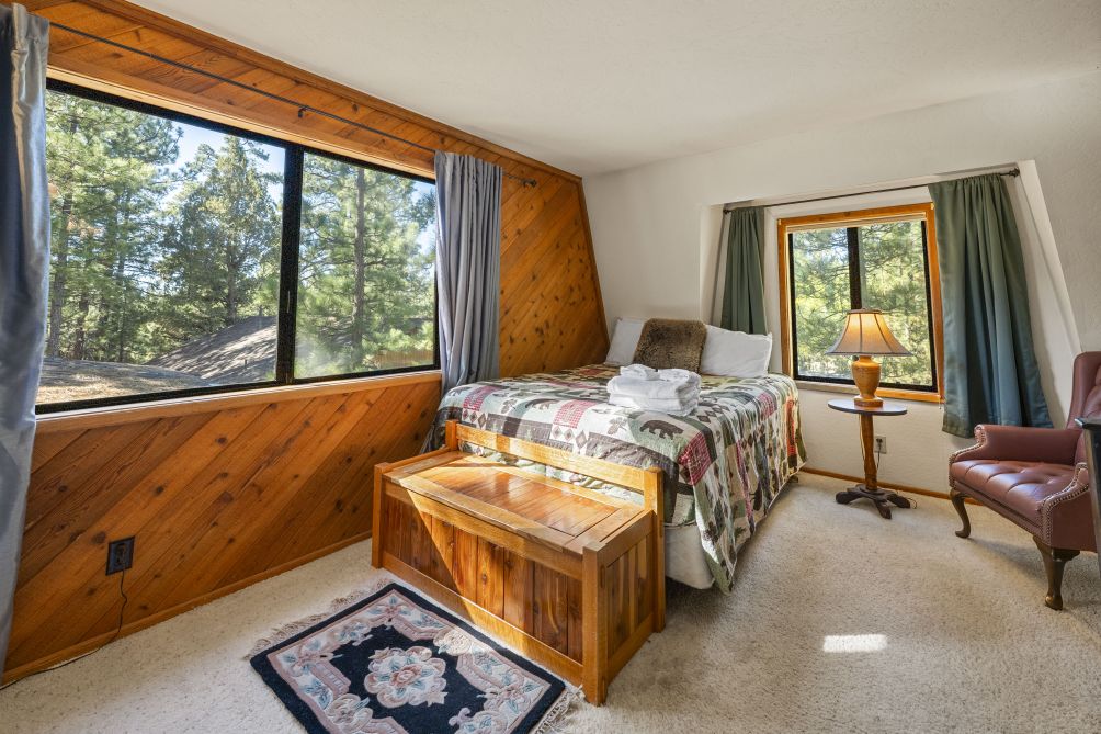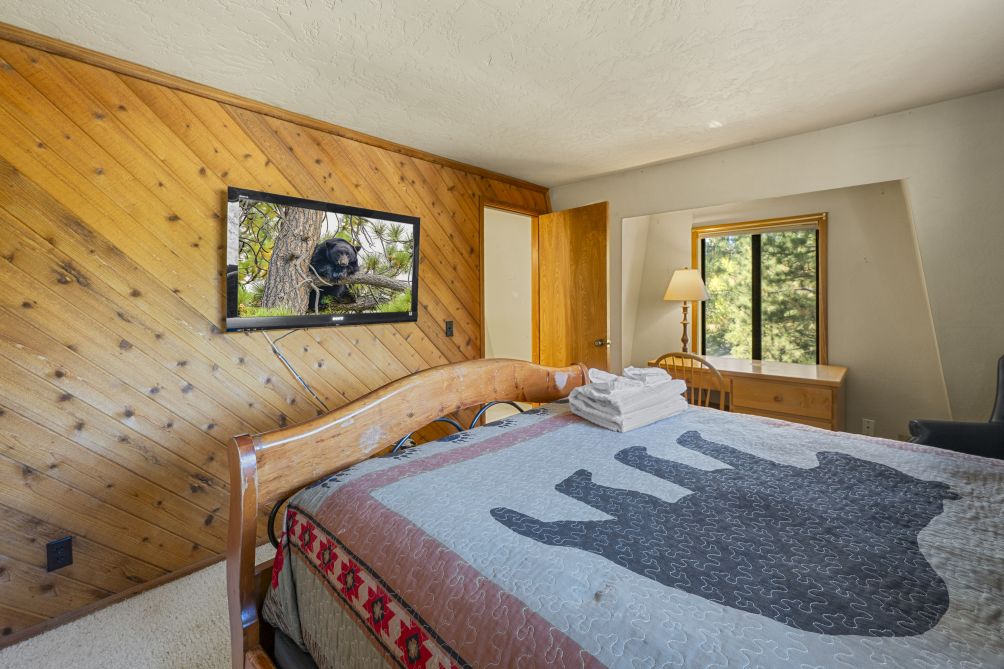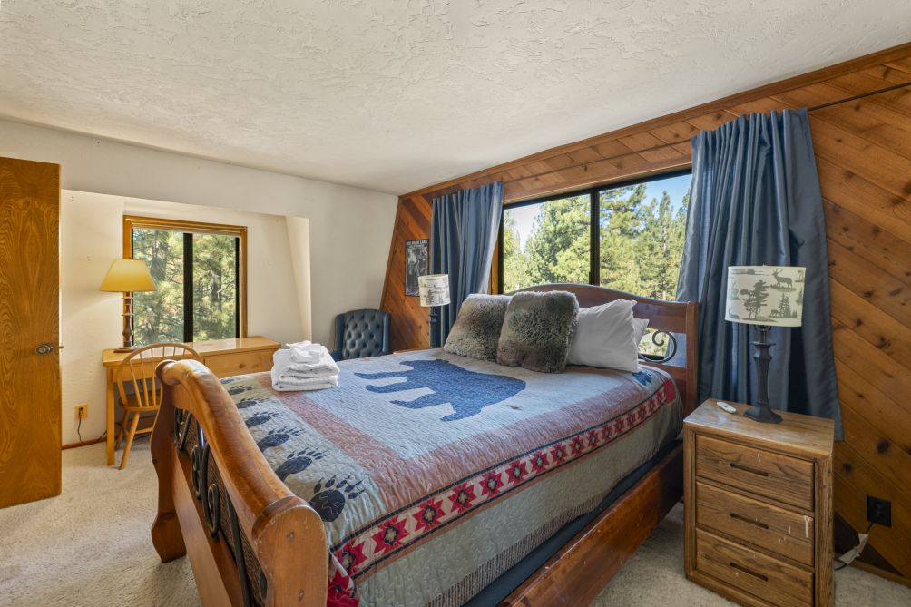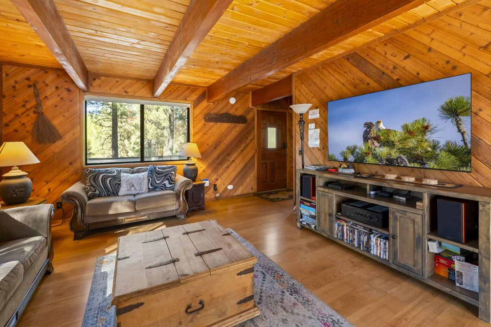 Nestled amidst the serene beauty of Big Bear Lake, The Mountain Treehouse offers a unique retreat that blends rustic charm with modern comforts. This secluded haven provides captivating mountain views, allowing you to immerse yourself in nature's tranquility. The property features two cozy bedrooms. The living room, with its inviting fireplace, is perfect for unwinding after a day of adventure. Step outside onto the expansive deck to enjoy the fresh mountain air, or soak in the private hot tub under a starlit sky. The kitchen is equipped with modern appliances, including a Keurig coffee machine and a wine glass set, ideal for culinary enthusiasts. With amenities like high-speed Wi-Fi and a smart TV, you'll have all the conveniences of home at your fingertips. Embrace the peaceful ambiance of The Mountain Treehouse, where unforgettable memories await.