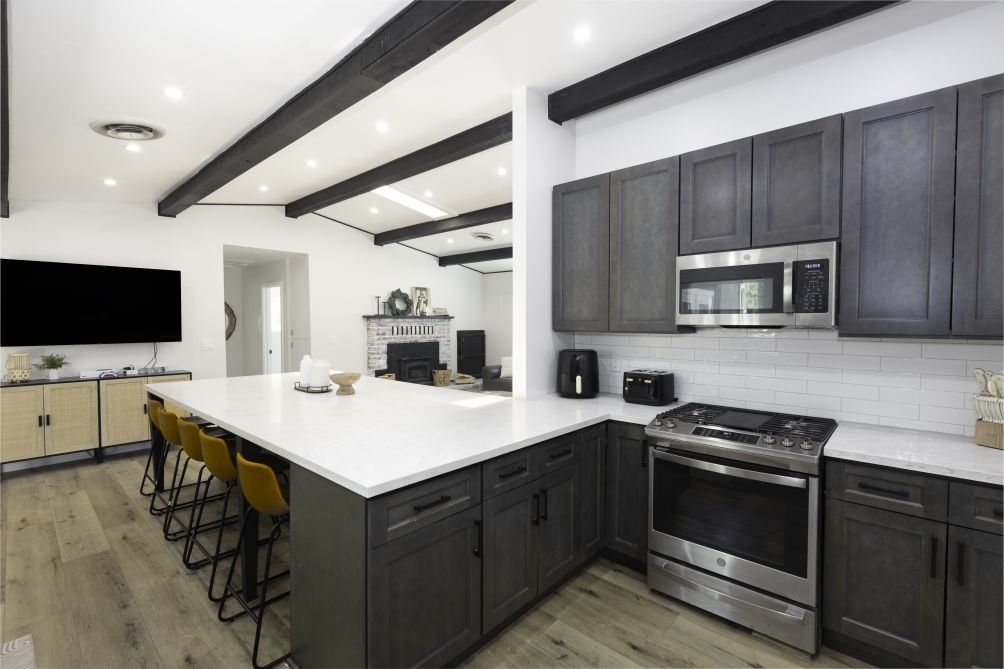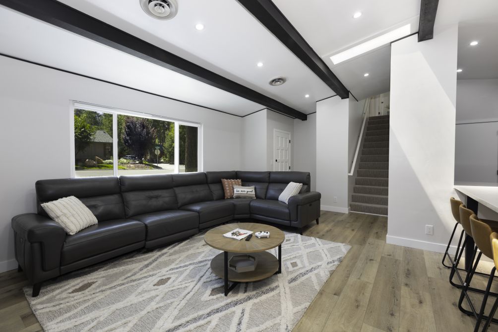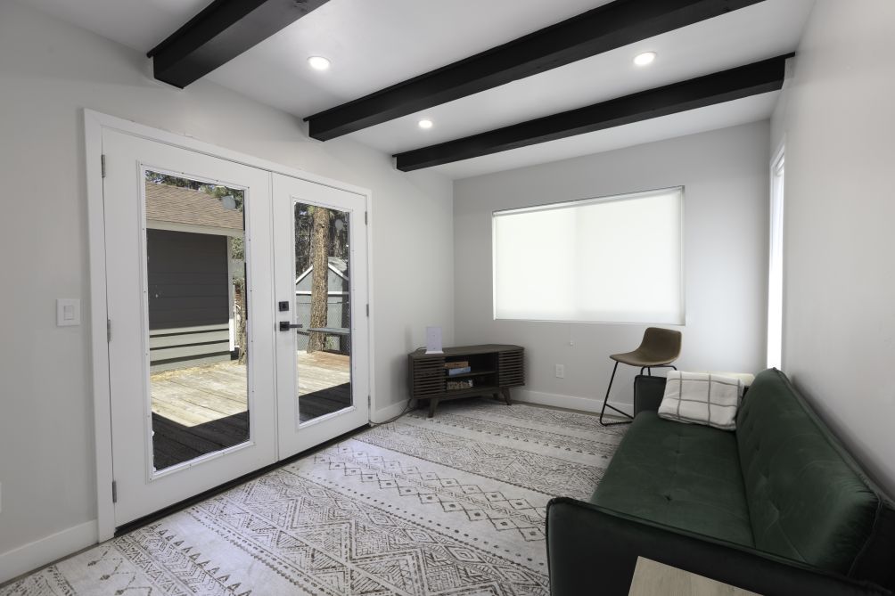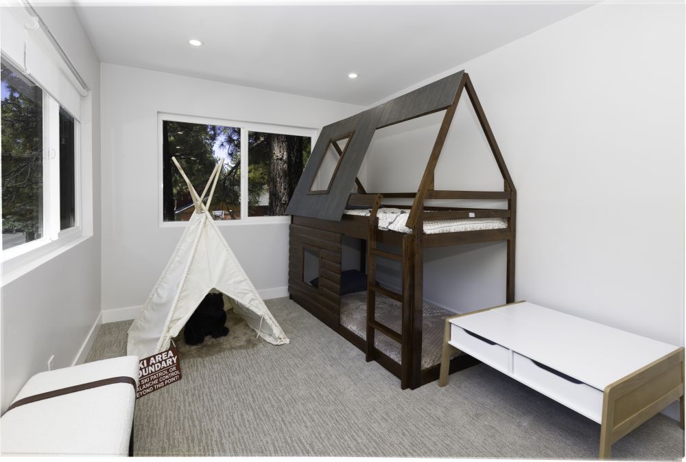 Escape to the Bear Mountain Getaway, a serene retreat nestled in the picturesque surroundings of Big Bear Lake, California. This charming property offers breathtaking mountain views and a tranquil atmosphere, perfect for those seeking a peaceful escape. The inviting living area is designed for relaxation, while the equipped kitchen caters to all culinary needs.